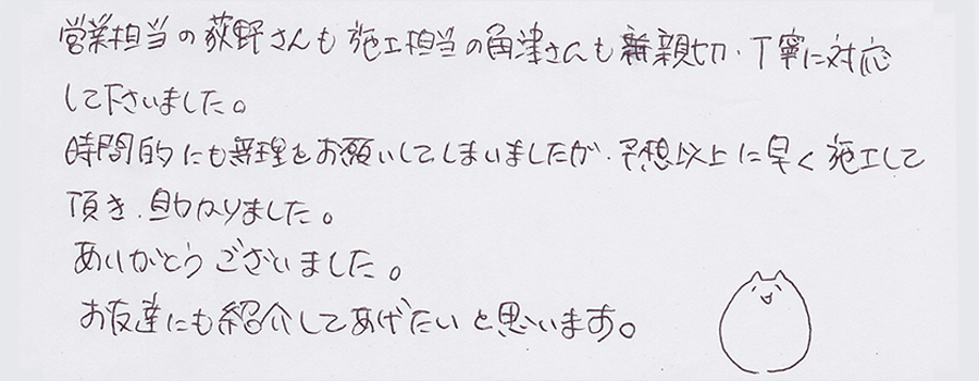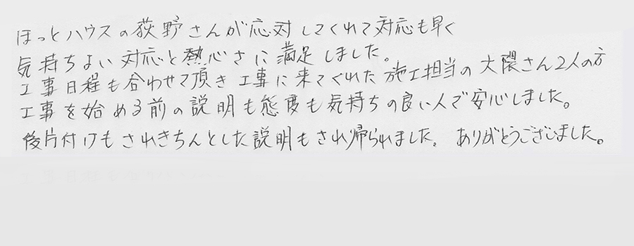 住人の方に長時間ご迷惑をおかけすることもありません。