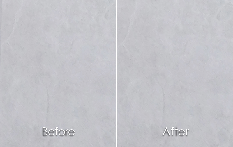また、床面の美観を損ねることはございませんが、表面に形成された2~7マイクロメートルの凹部により光の乱反射が起こり、若干の変化が起こる場合がまれにございます。
